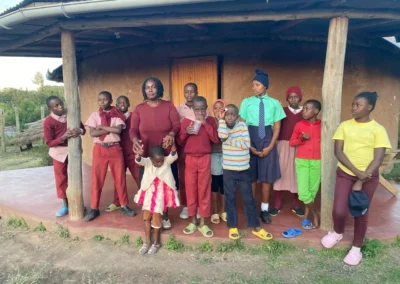 The children’s home takes shape! In the traditional Kenyan clay building style, two round houses for girls and boys, as well as a connecting building with sanitary facilities, are constructed. A third round house serves as a common house for dining, playing, and as a day room. A water treatment system is installed for wastewater disposal. Caretaker Wiclif already helped with the construction and lives on the premises to guard the buildings, grounds, and building materials from the very beginning. He also establishes a garden early on, where vegetables and fruits can grow.